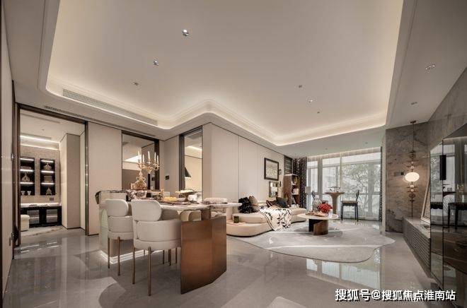 双轴线的设计,充分拓宽了视野面与观赏点位,环形回廊、精神游廊与下沉庭院通过立体景观平台相融,又创造出隔岸听泉的诗意场景。在每个重要生活触点,业主都能拥享独特景观和欣赏视野。