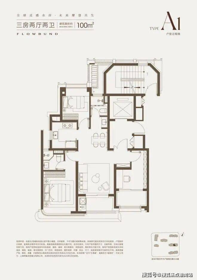 建面约100㎡户型,标准一梯一户下,独立电梯入户空间不仅可以作为私人入户的玄关,还相当于额外增加了隐形实用面积。