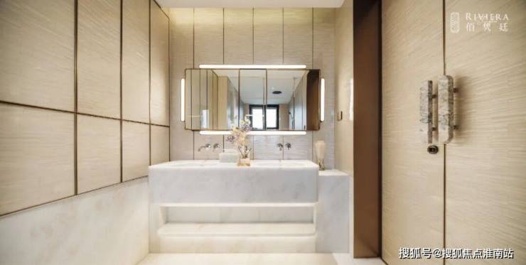 阳光满溢, 尤其主卫罕见实现朝南采光 ,搭配奢华的双台盆、马桶间、浴缸与淋浴的“四件套”配置,尽显高端居住品质;